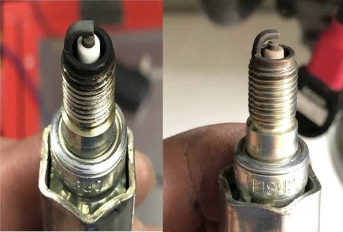 プラグの燃焼状態(左:純正部品・右側:強化キャップ)を見ればダイレクトの効果が分かります