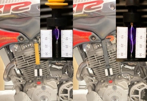 スパークテスト比較・左:純正*右:DIキャップ