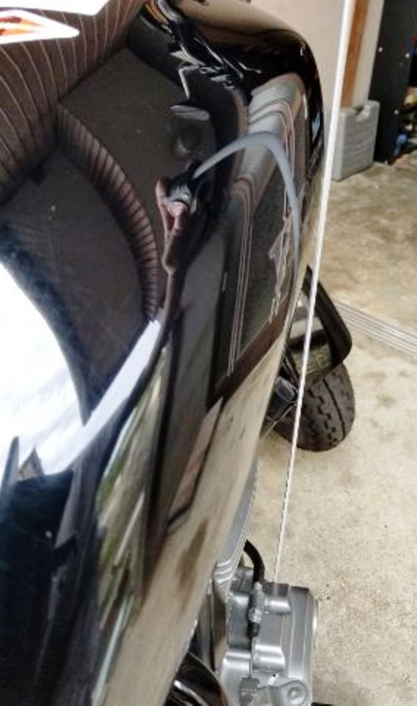 構造上、純正キャップより長くなりますが、張り出しもなくニーグリップに影響ありません【画像の取付車両はCB223S】